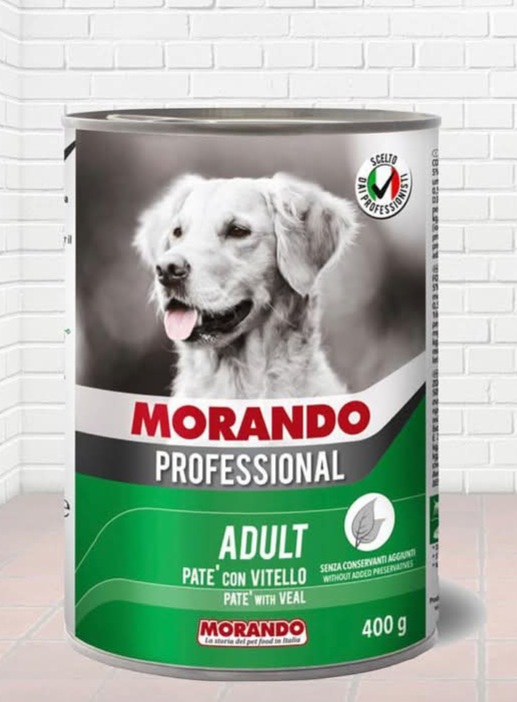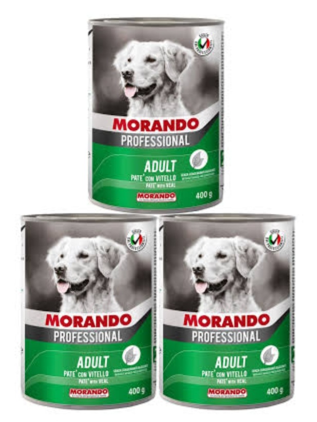 Morando canned dog food is made in Italy and is designed to provide a balanced diet for pets. Morando dog food contains cereals, meat, vegetable derivatives, oils and fats, minerals, and yeasts.